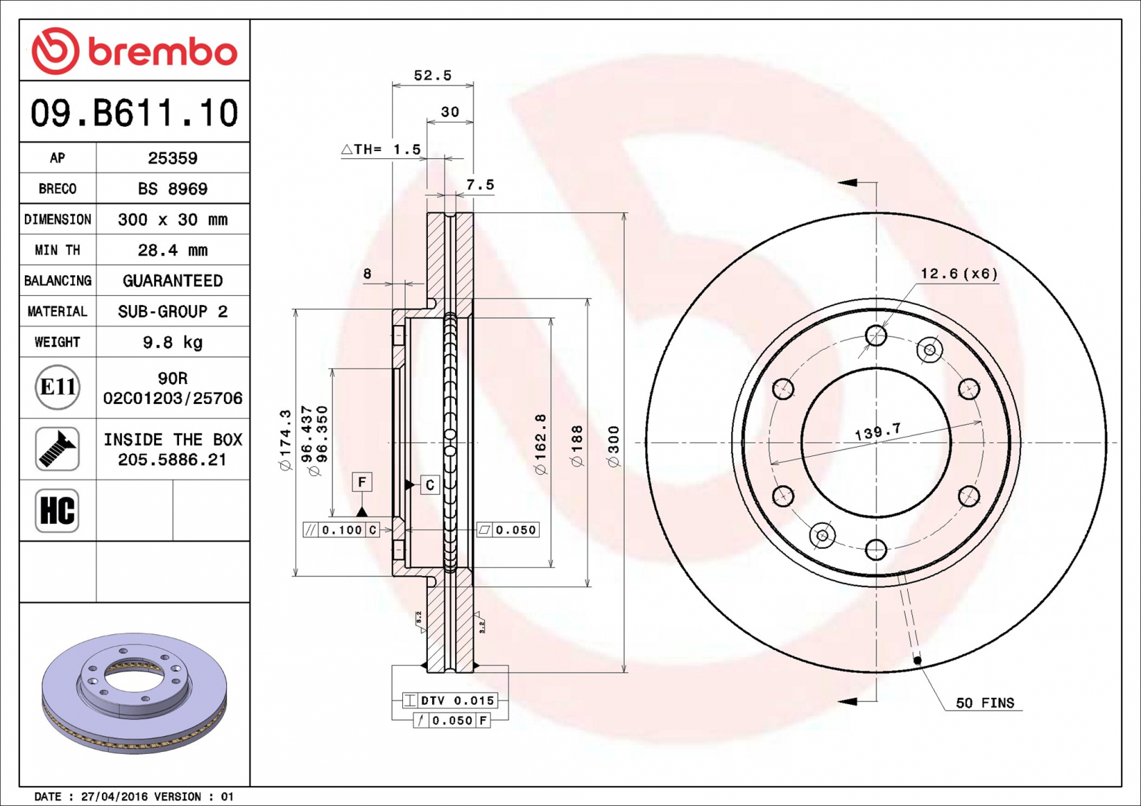 BREMBO Disc frana BREMBO 09.B611.10