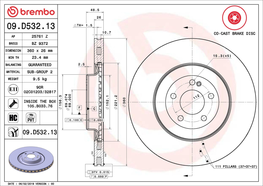 BREMBO Disc frana spate BREMBO 09.D532.13